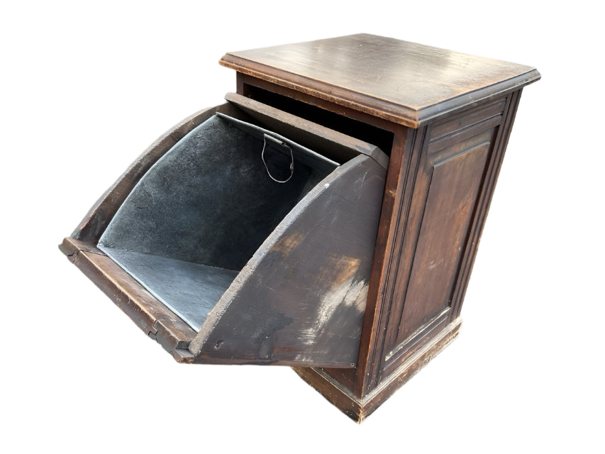 A Victorian hardwood purdonium with moulded top above a brass handled compartment with carved front, having interior with galvanised liner, raised on a plinth. (14in x 13.5in x 21.5in)
